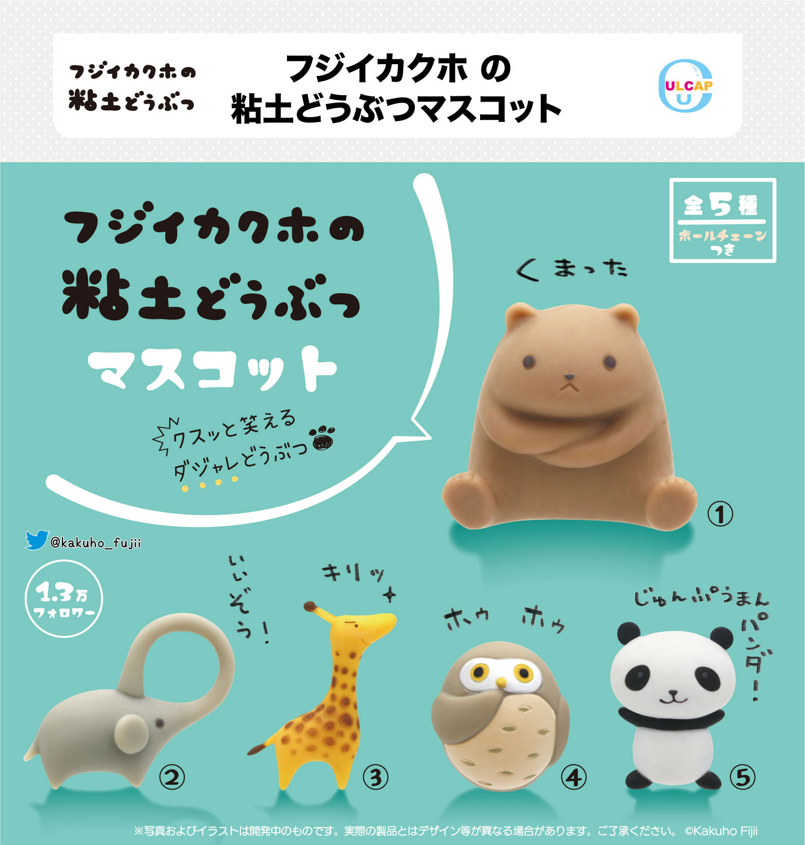 カプセルトイ「フジイカクホの粘土どうぶつ」のボールチェーンマスコットが