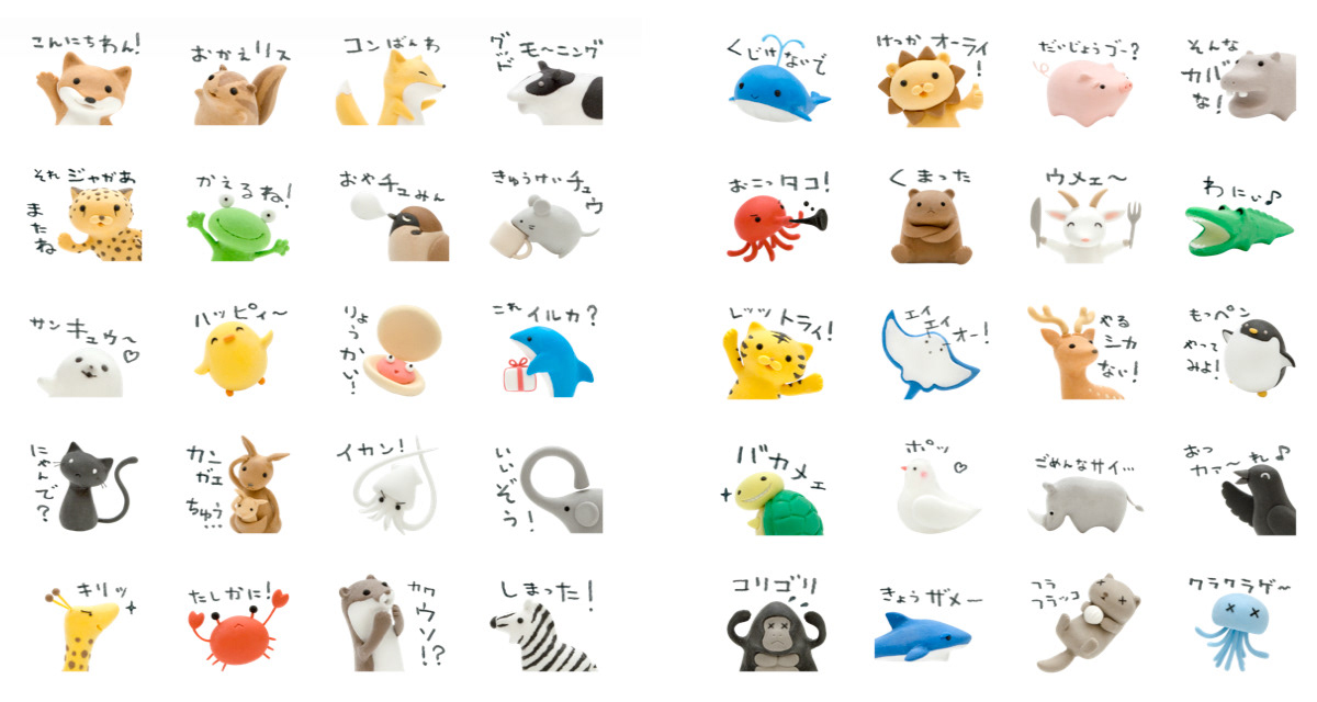 LINEスタンプ 「フジイカクホの粘土どうぶつ」
